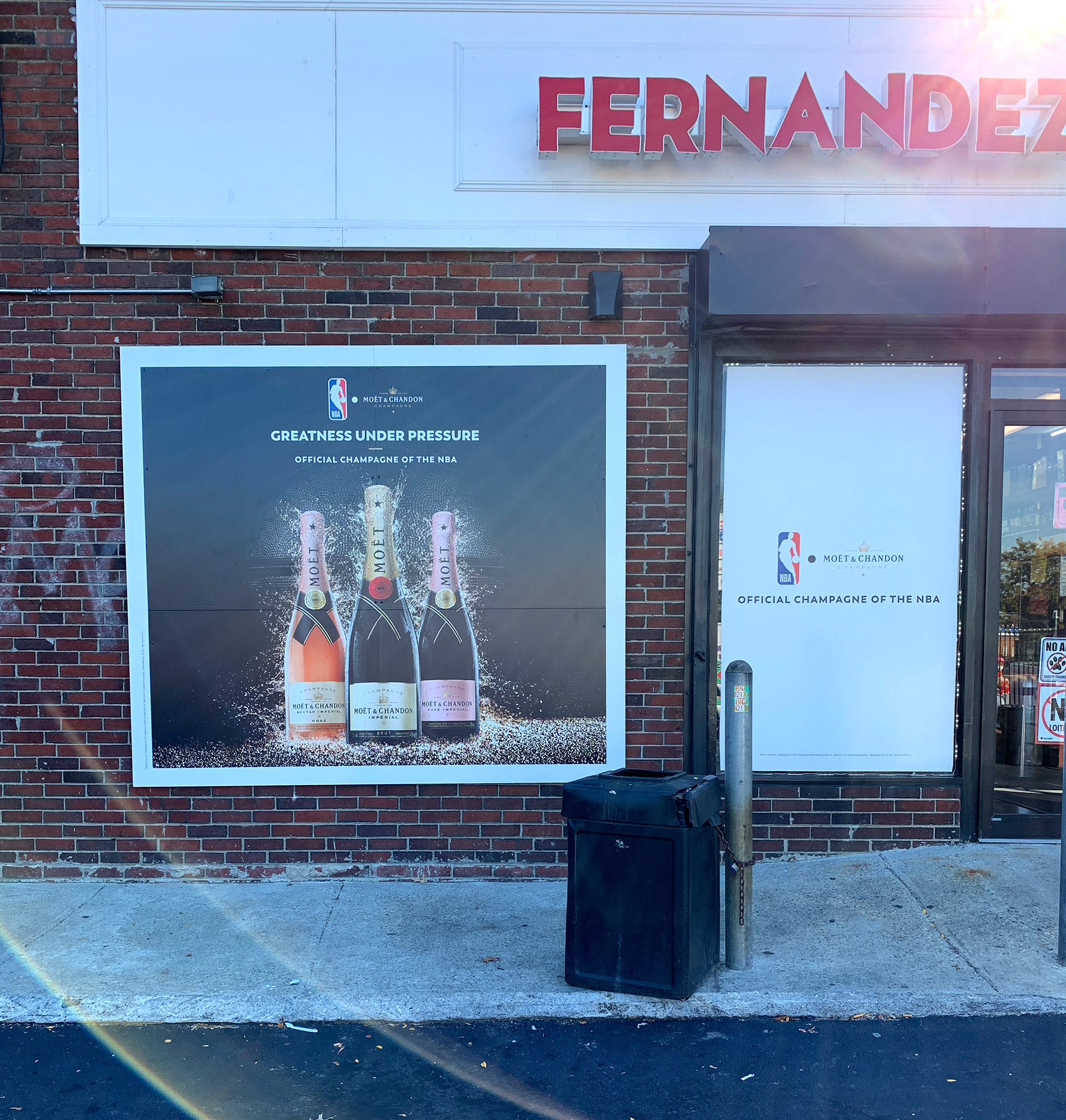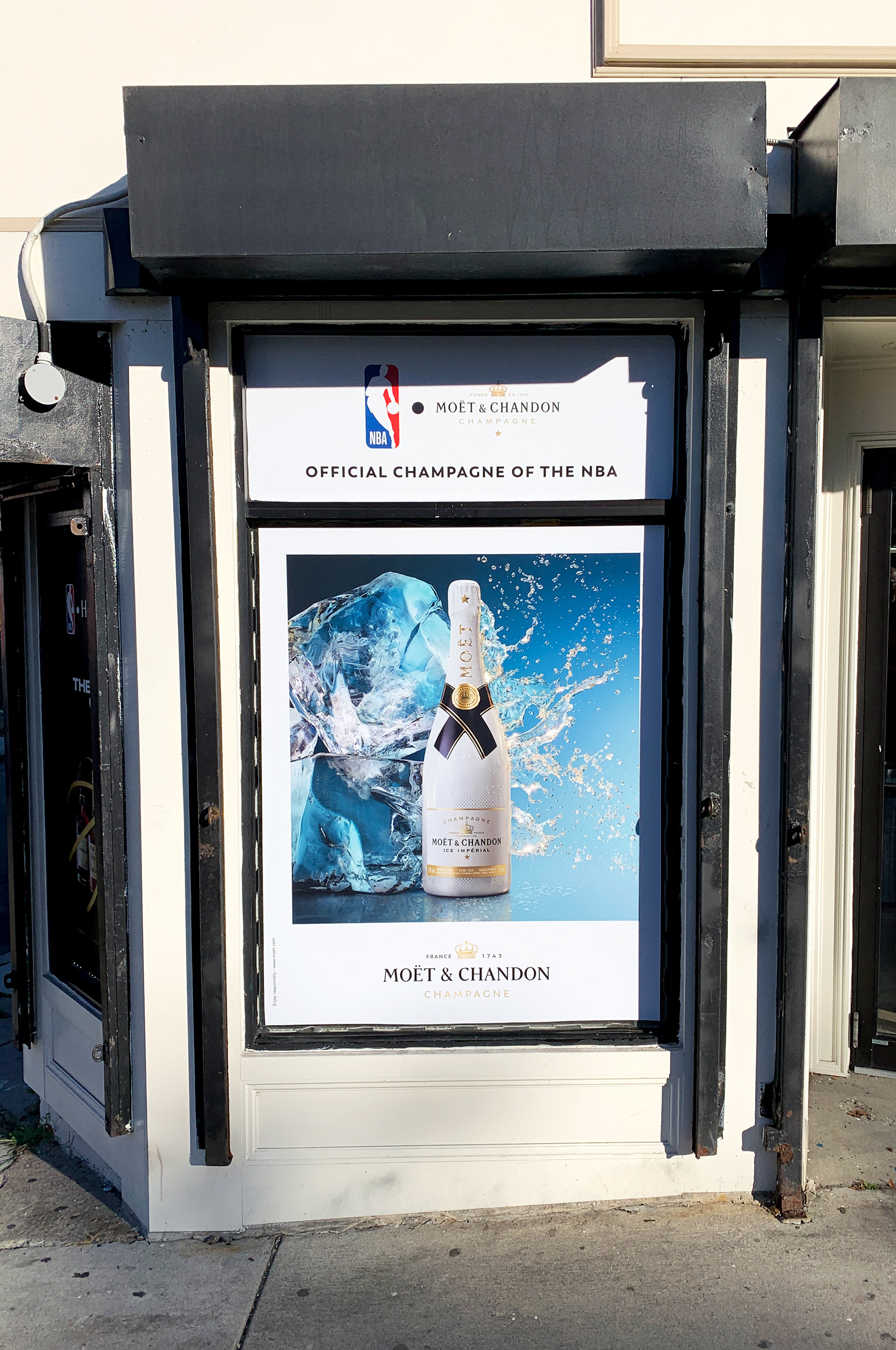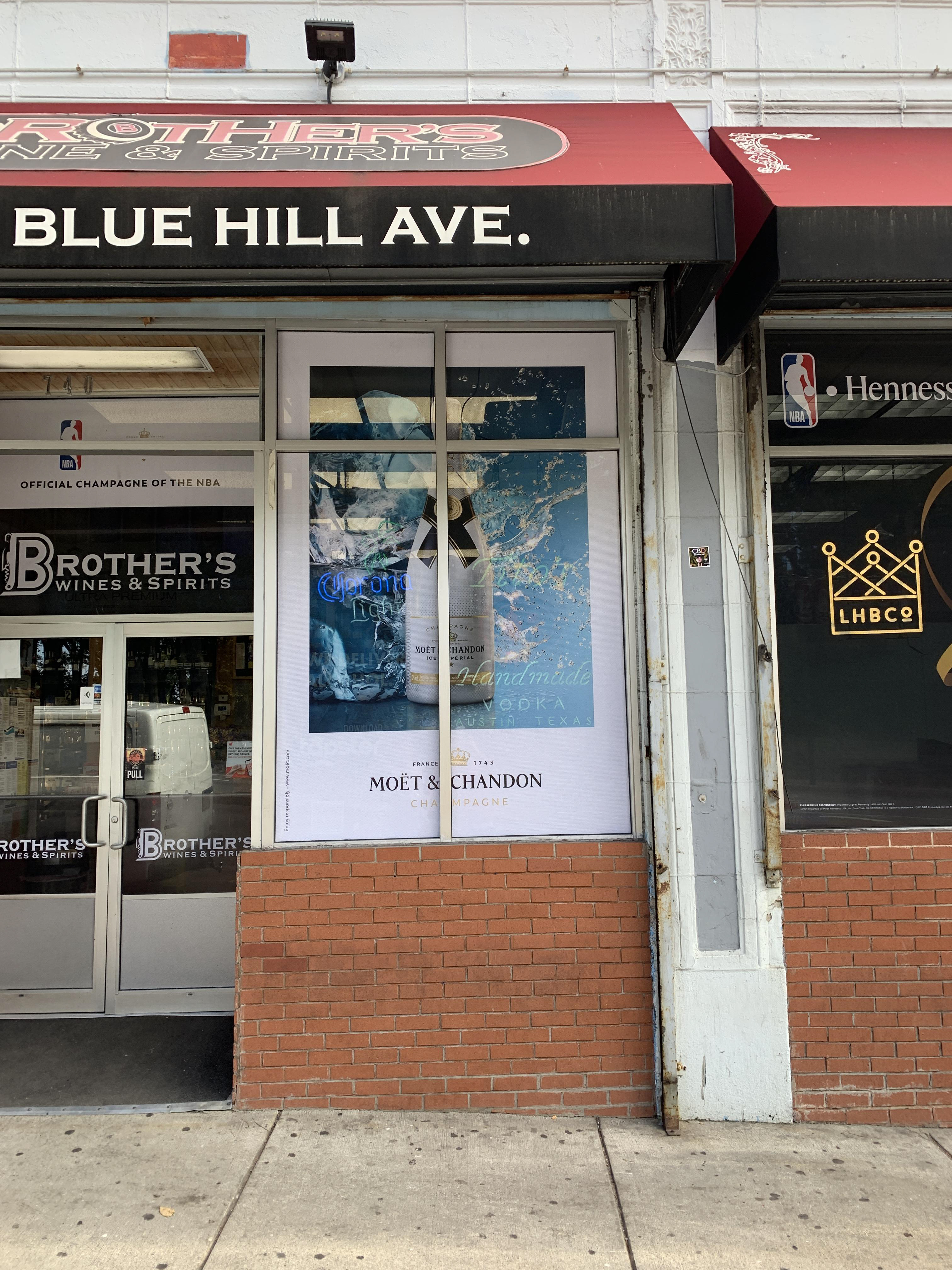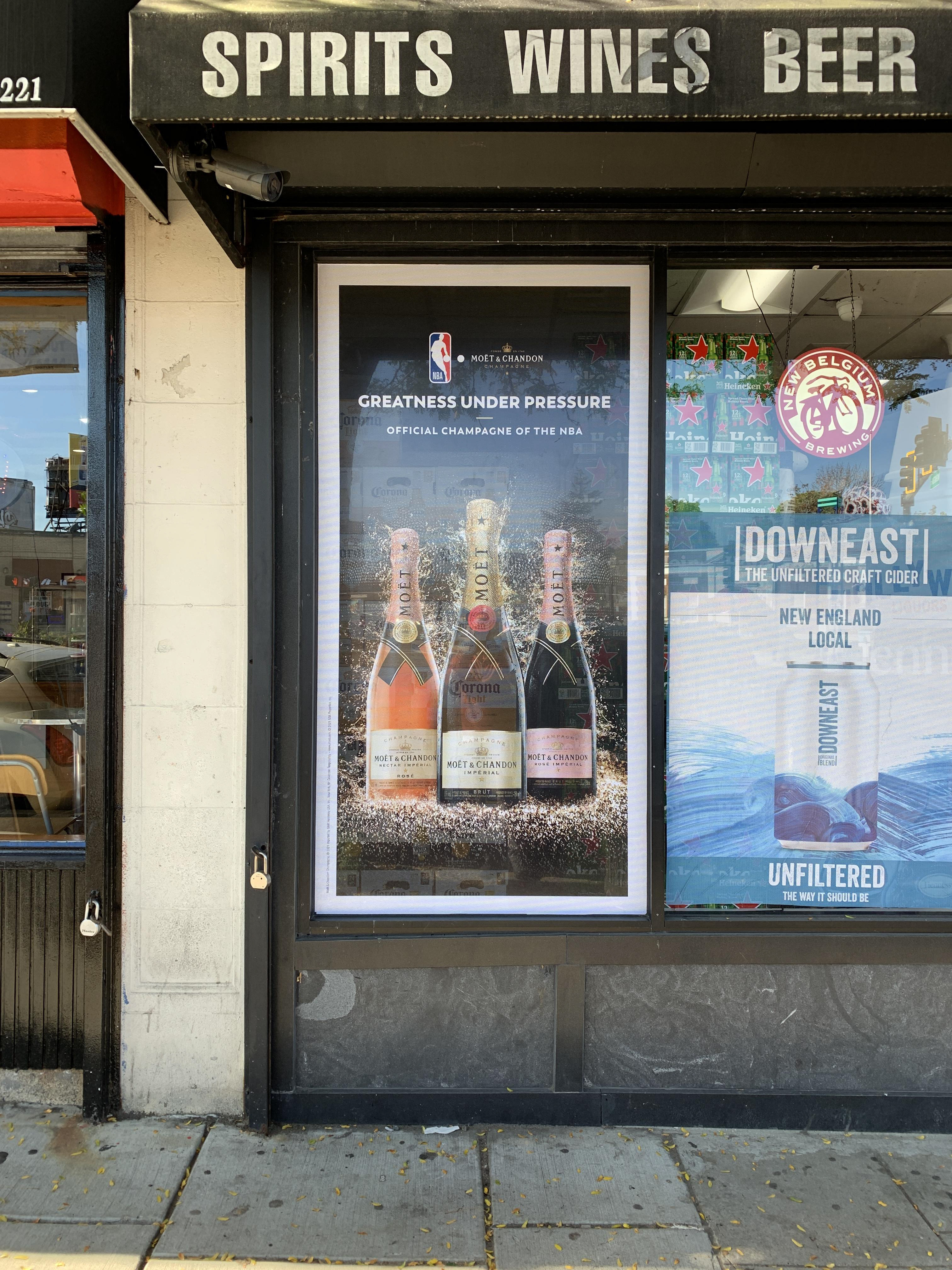 The first install for this campaign was requested to be a large scale wall mural outside of Metro NY area. We landed on a wall space that spanned: 384" x 240"[ 32' x 20' ] - requiring a large scale outdoor mural to be installed in the dead of winter. Vinyl graphics don't install well at anything below 50 degrees Fahrenheit - but we needed to get the campaign kicked off to start the year. Our fantastic installer and on-site coordinator ( Paul King) came up with an idea to pre-install the full color bottle graphic in a temperature controlled warehouse, and then apply the letters and logos on-site in a heated tent. Normally - a more complex image spanning the mural would make it impossible to accurately match up 15+ 8' panels - but this unique artwork allowed for this sort of execution. The install method worked out great, and this mural has lasted from initial install in January 2021 through current day ( 2025).