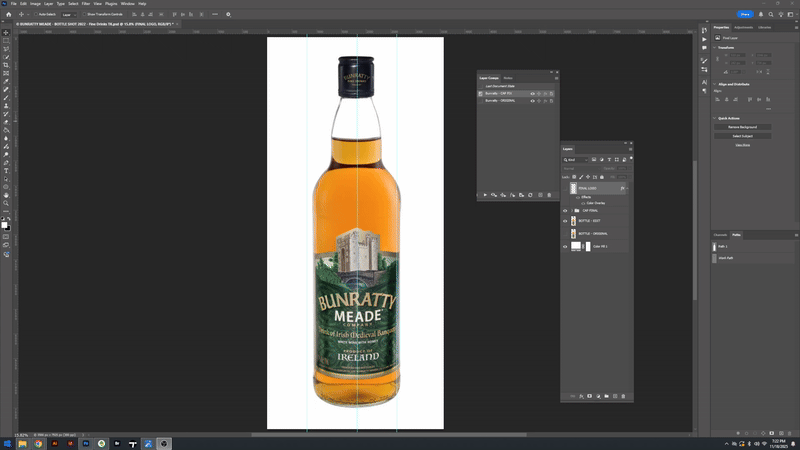 Bunratty Meade - This brand had updated their twist-off cap logo after having the bottle shot photographed. I swapped out the old logo and matched lighting on original cap. Image used for product ads, sales flyers etc.