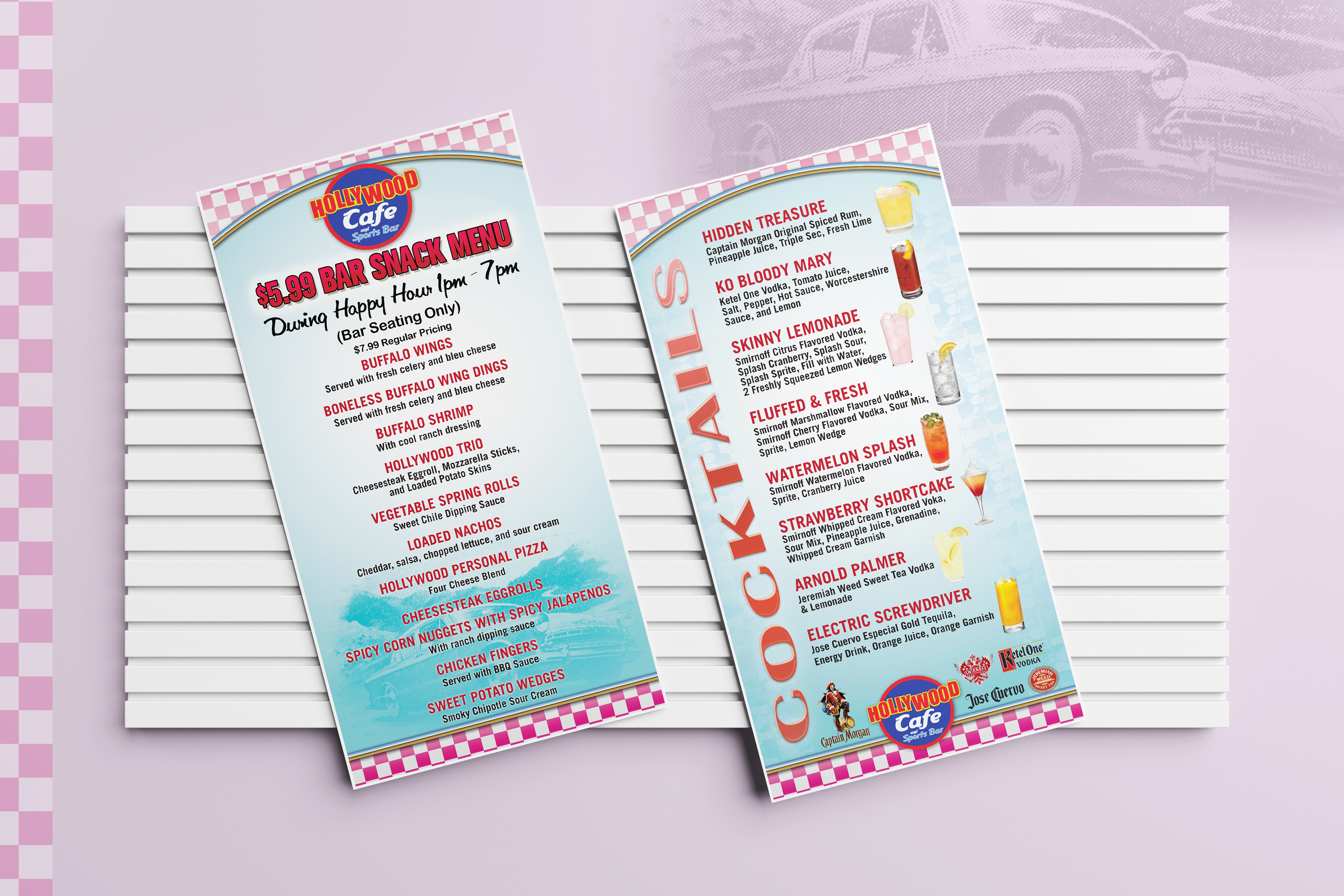 Double-Sided Cocktail Specials Menu - Hollywood Cafe - 5" x 10"